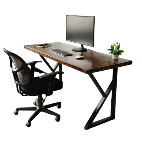 This modern office desk setup includes a stylish wooden desk with a minimalist design paired with an ergonomic mesh office chair. The desk features a spacious surface perfect for your computer, keyboard, and other work essentials, while the ergonomic chair provides long-lasting comfort and support, promoting healthy posture during work hours.
